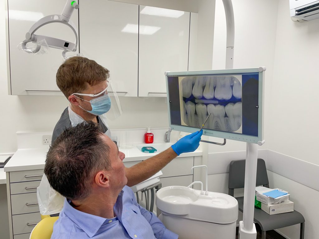 The amount of radiation received from a dental X-ray is extremely small. We have recently invested in new digital radiography technology which reduces the radiation exposure still further. Radiation is present all around us all the time. You get about the same amount of radiation from having two dental X-rays as you do travelling on a flight to Spain. We take your safety and ours very seriously. We take x rays to give us much more information about your teeth and mouth than we can see just by a visual inspection. It can show us decay in between the teeth or under old fillings which if treated early, is much easier and less expensive than waiting until the problem becomes obvious . They can show us how adult teeth are developing and the position of your wisdom teeth and allow us to check whether you have gum disease related bone loss.